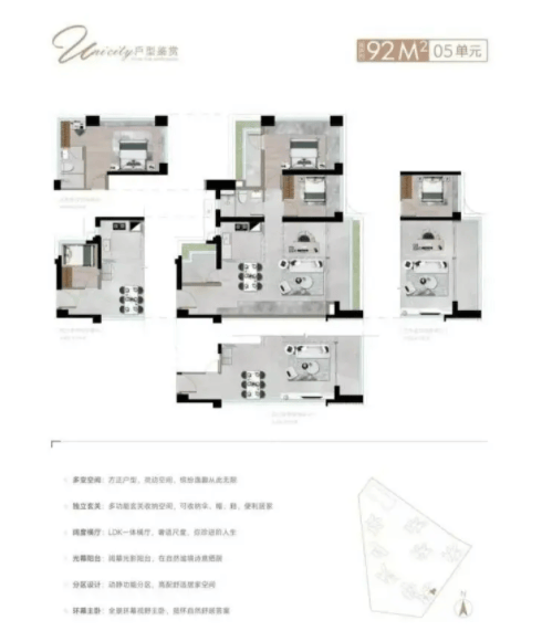 这个户型不只满脚了栖身的根基需求,更提拔了糊口的质量。宽敞的公共空间适合举办家庭,对于逃求高质量糊口的改善家庭来说,力诚榕诚湾的这个户型是不成多得的珍品。
