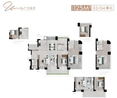 位于8栋的建面约125-140㎡四房两厅两卫户型,是专为改善家庭打制的终极居所。该户型采用2梯4户设想,栖身密度适中。大横厅结构气焰恢宏,搭配南向不雅景阳台,可一线俯瞰花地河景,将天然美景尽收眼底。玄关的设想,添加了入户的典礼感和收纳空间。从卧套间功能完整,除了的卫生间,还预留了衣帽间的,私密性取舒服度兼具。三个次卧大小适宜,可满脚两个孩子和白叟的栖身需求,或者将此中一个改为书房、影音室等多功能空间。
